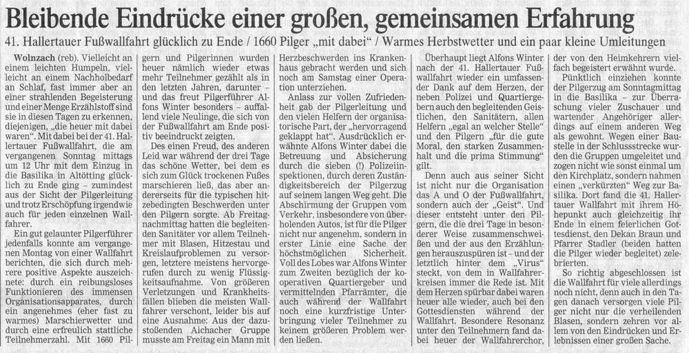 aus dem Wolnzacher Anzeiger vom 10.10.2001